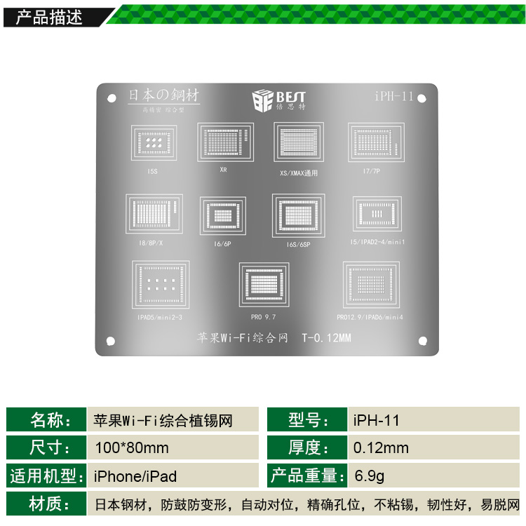 iPH-11 手機Wi-Fi綜合植錫網(wǎng) 多用植錫方孔定位鋼網(wǎng) 植錫卡