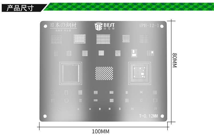 返回當(dāng)前位置: 首頁 / 產(chǎn)品中心 / iPH-12-1 手機(jī)CPU植錫網(wǎng) 多用植錫方孔定位鋼網(wǎng) 植錫卡