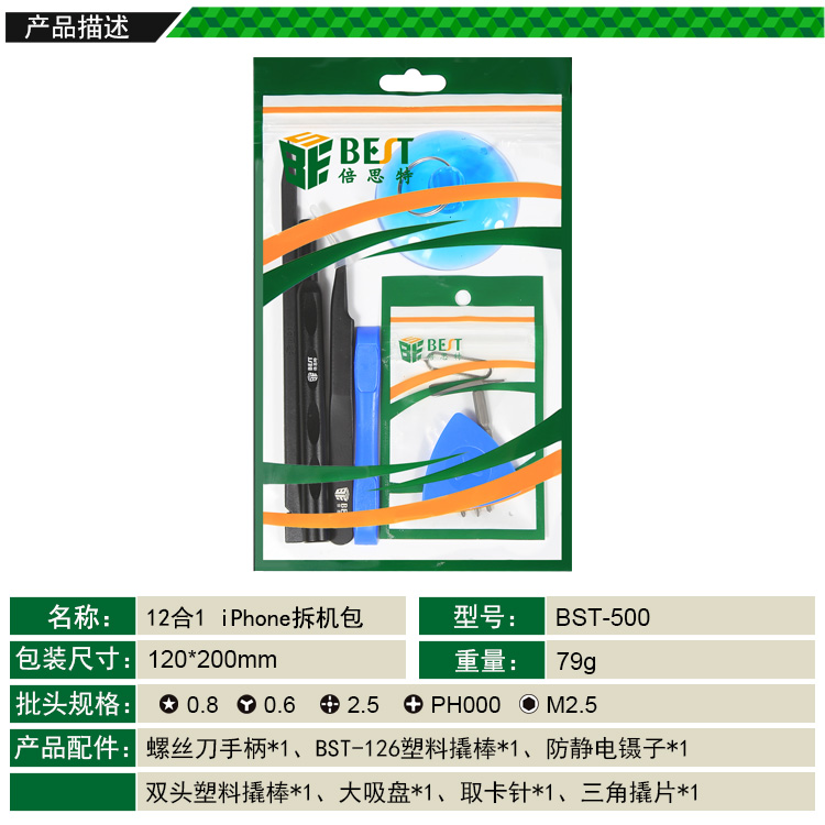 返回當(dāng)前位置: 首頁(yè) / 產(chǎn)品中心 / BST-500 12合1 iPhone拆機(jī)包 蘋果手機(jī)維修工具套裝