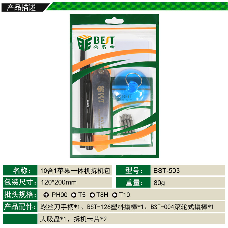 ? 產品名稱: 10合1 蘋果一體機拆機包? 產品型號: BST-503? 產品類別: 拆機工具系列