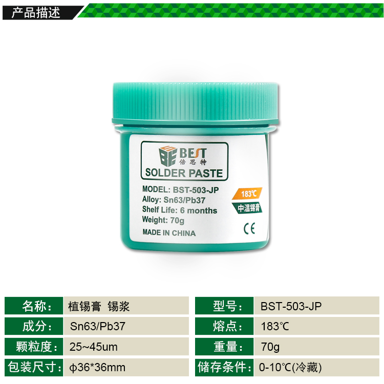 BST-503-JP 中溫錫漿 BGA植錫膏 Sn63/Pb37 70g