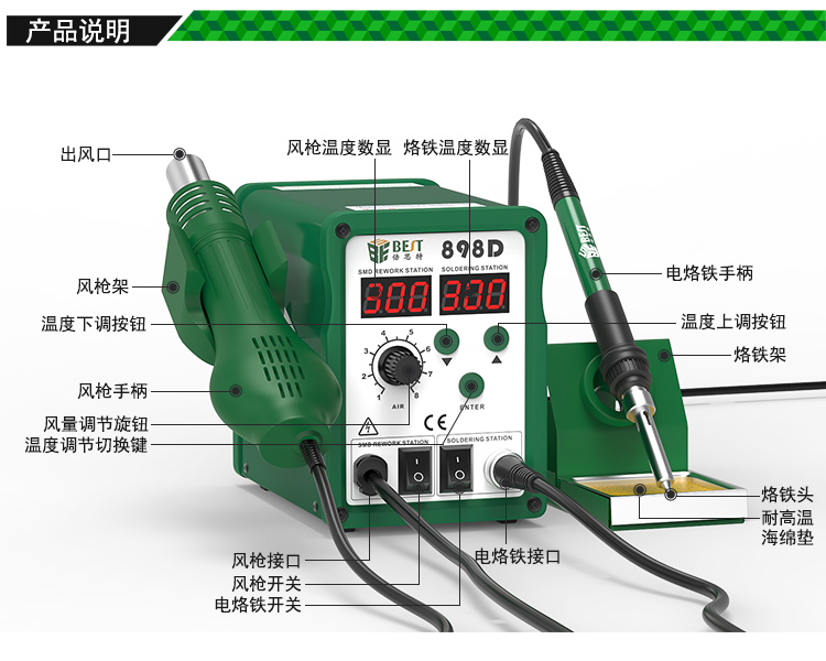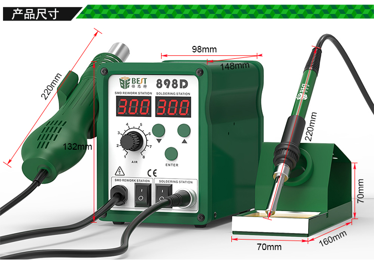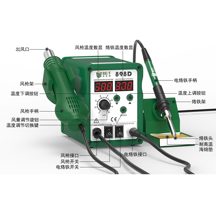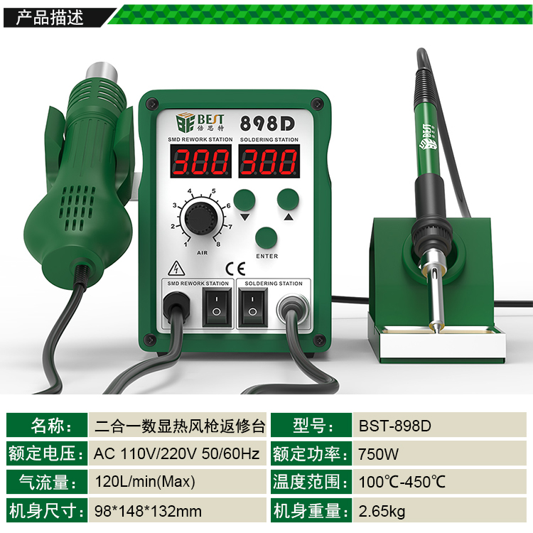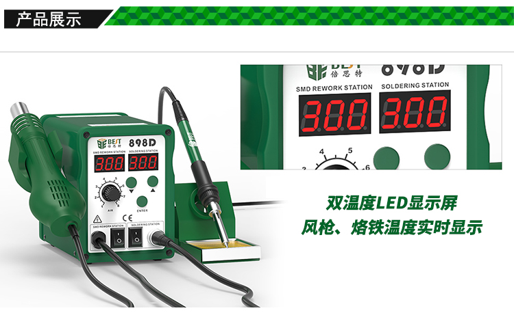 BST-898D 二合一雙數(shù)顯智能無鉛螺旋式熱風(fēng)槍+焊臺(tái)