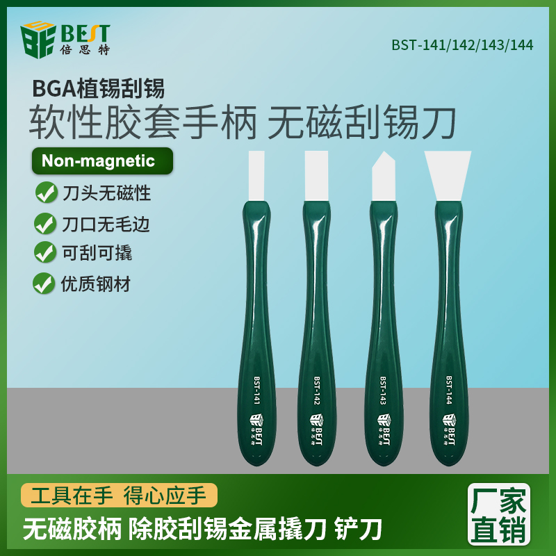 返回當(dāng)前位置: 首頁 / 產(chǎn)品中心 / BST-141/142/143/144 無磁刮錫刀 無磁膠柄除膠刮刀 超薄耐高溫防銹防腐工具撬刀 錫漿攪拌BGA撬刀