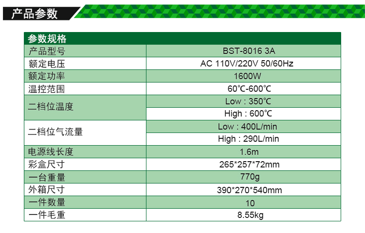 返回當前位置: 首頁 / 產(chǎn)品中心 / BST-8016 3A 手式熱風槍 1600W