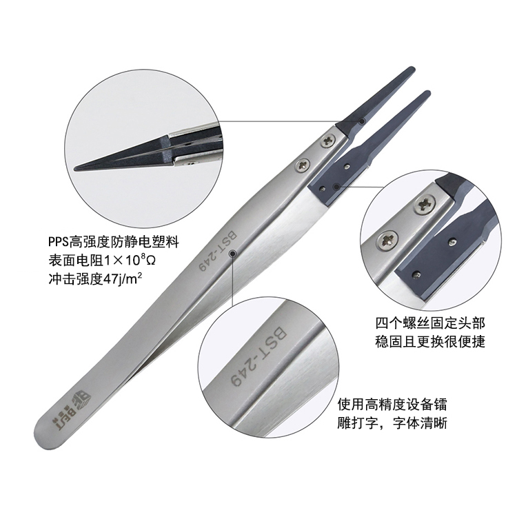 ? 產品名稱: 防靜電鑷子可換頭? 產品型號: BST-249? 產品類別: 鑷子系列
