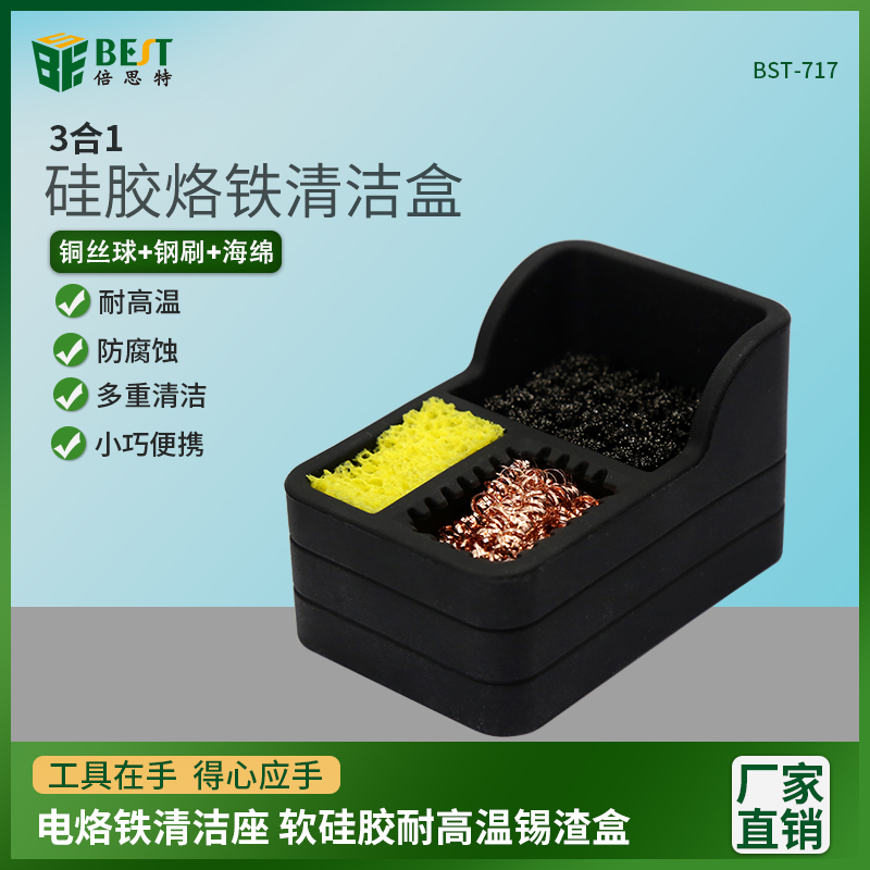 返回當(dāng)前位置: 首頁 / 產(chǎn)品中心 / BST-717 硅膠烙鐵清潔盒 三合一電烙鐵頭清潔盒 硅膠耐高溫焊咀焊接清潔銅絲球錫渣盒清潔器 清潔座