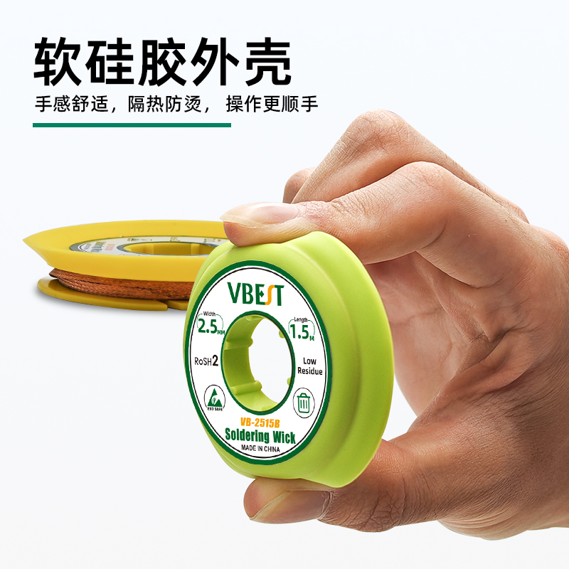 VB-1515B/2015B/2515B 收納吸錫線 非鹵素低殘?jiān)馇逑次a帶 純銅絲精密編織 收納型軟硅膠外殼