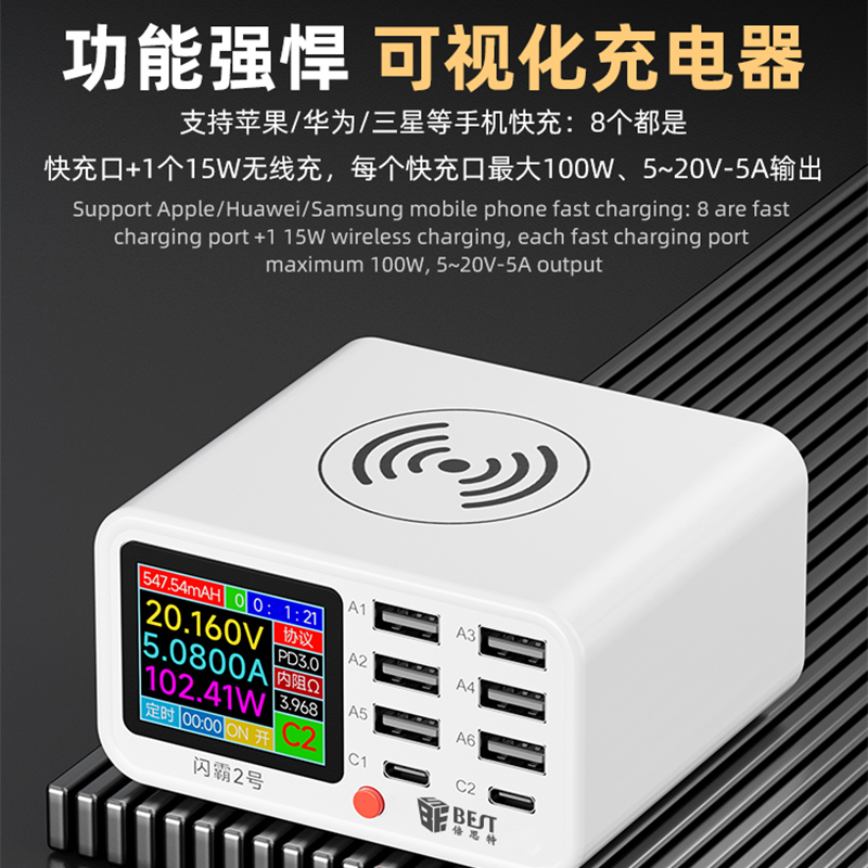 返回當(dāng)前位置: 首頁 / 產(chǎn)品中心 / BST-S2 閃霸二號(hào) 多功能8口可視化USB充電器 極速快充 無線快充 檢測維修一體數(shù)顯充電器