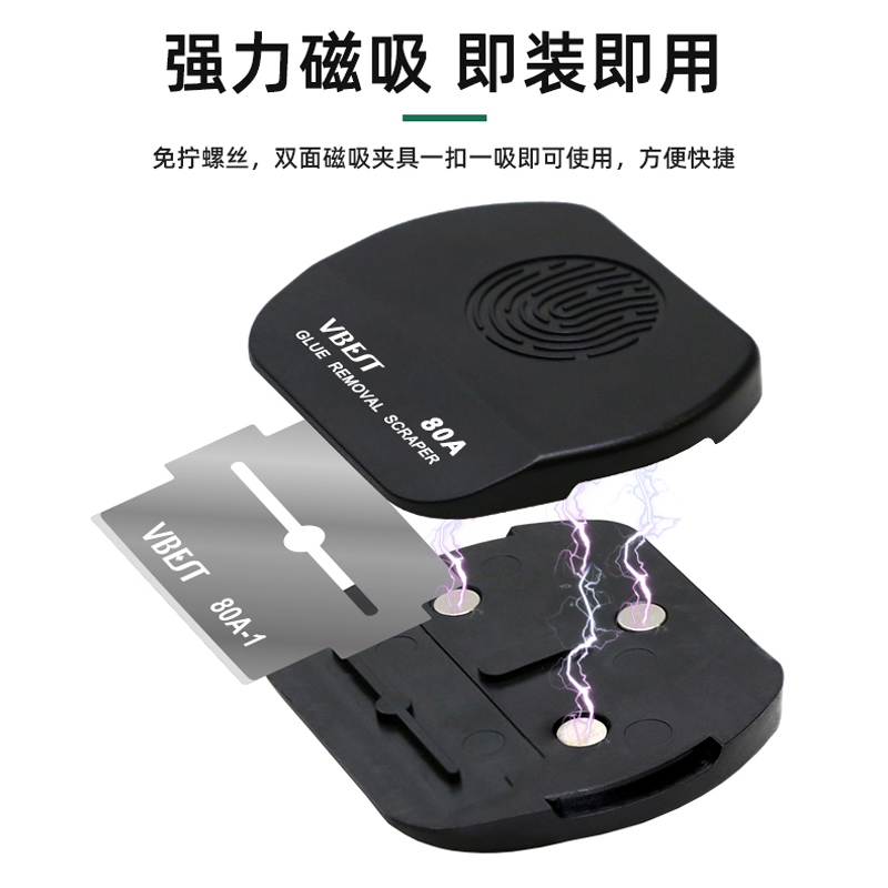 VBST-80B 磁吸雙面除膠鏟刀 維修9刀片合一芯片手機(jī)屏幕返修套裝 雙面刀片夾具除膠割膠磁性手柄 帶防割手指套