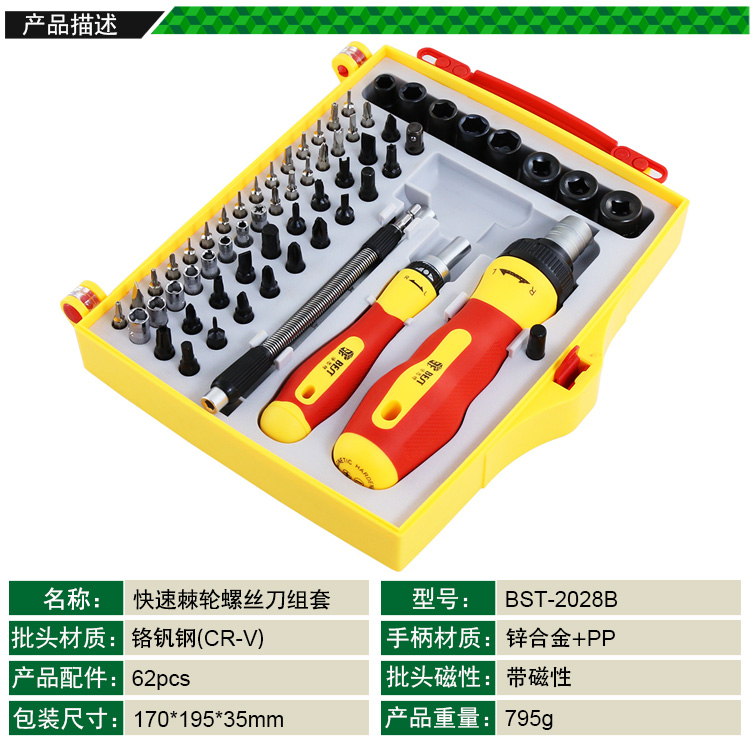 返回當(dāng)前位置: 首頁(yè) / 產(chǎn)品中心 / BST-2028B 62件套 快速棘輪螺絲刀組套