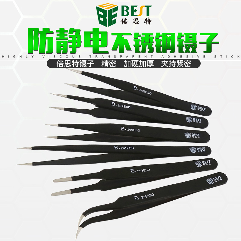 防靜電不銹鋼鑷子 202不銹鋼材 鑷子套裝不銹鋼防靜電手機(jī)維修加硬不銹鋼尖頭鑷子彎頭圓頭加長(zhǎng)夾