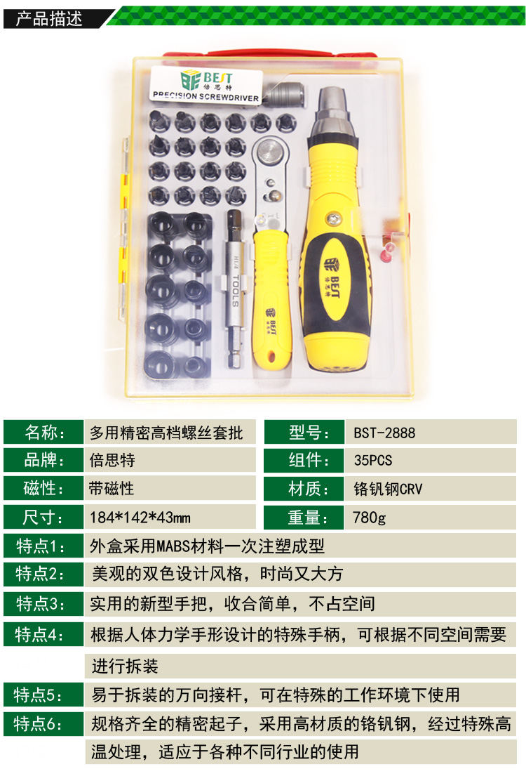 返回當前位置: 首頁 / 產(chǎn)品中心 / BST-2888 35件套 多用精密高檔螺絲起子套裝