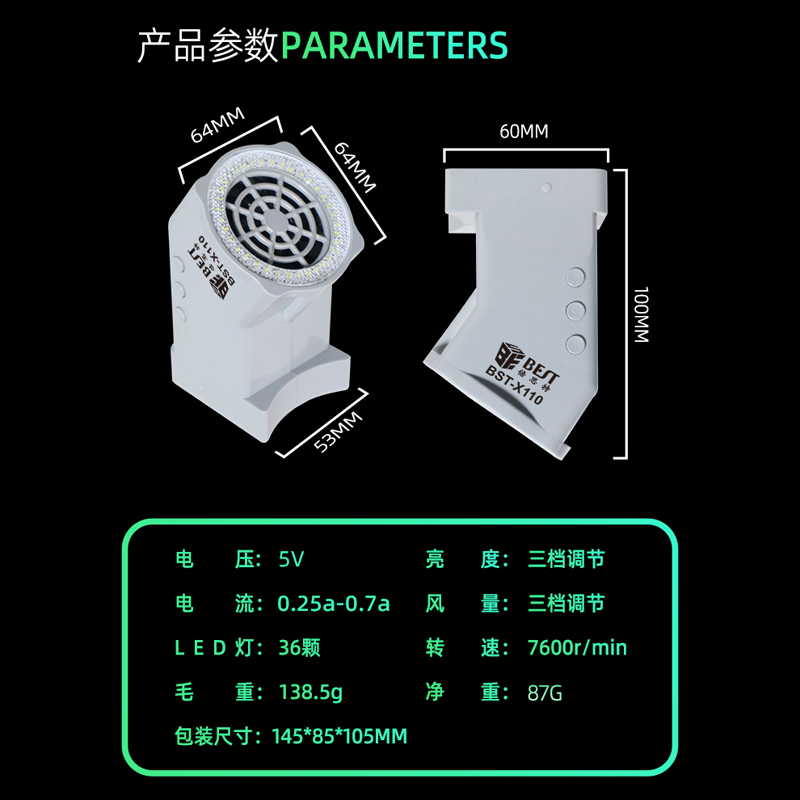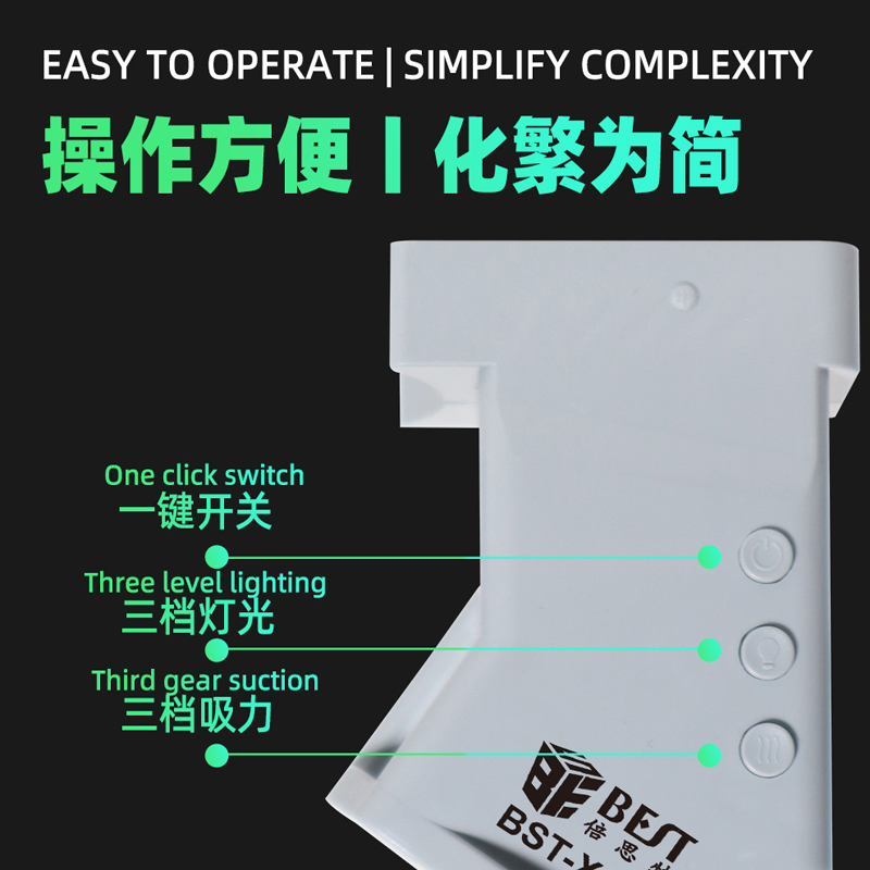 返回當(dāng)前位置: 首頁 / 產(chǎn)品中心 / BST-X110 顯微鏡LED吸煙儀 三檔風(fēng)力調(diào)節(jié) 亮度可調(diào)36顆LED燈珠7.8W 小巧環(huán)保吸煙機(jī) 煙霧凈化器 排煙過濾風(fēng)扇