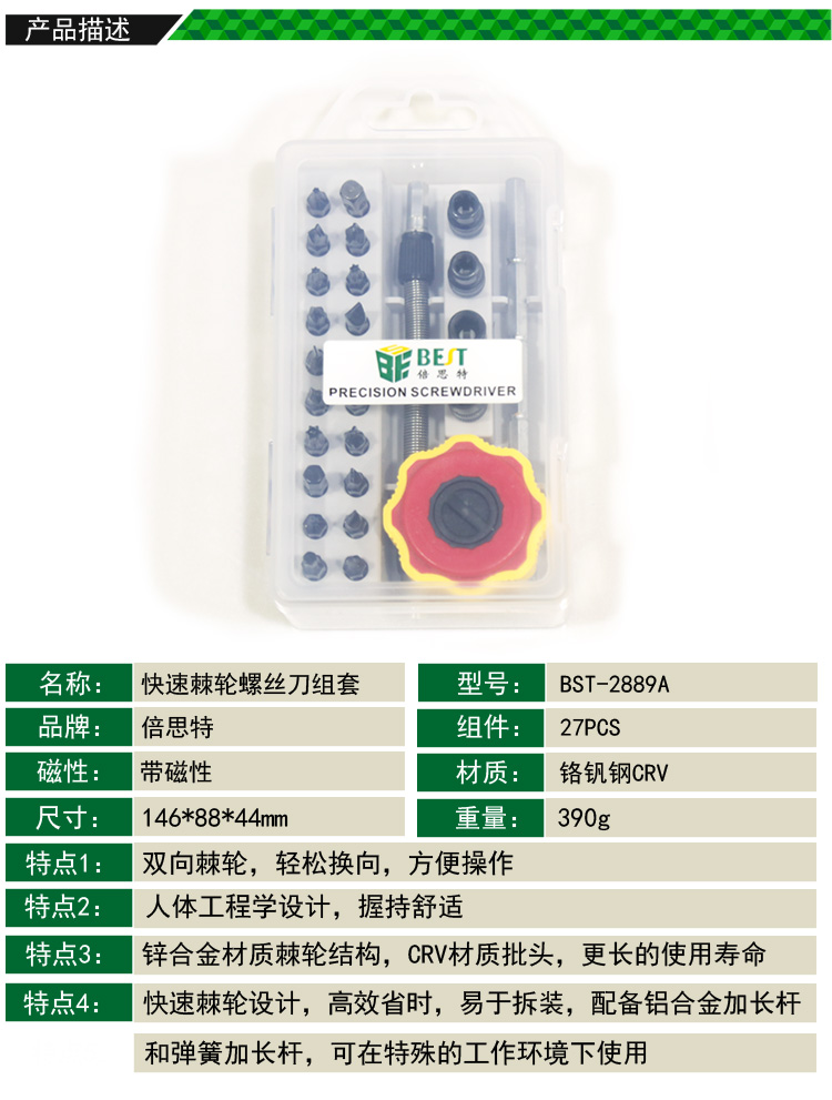 返回當(dāng)前位置: 首頁(yè) / 產(chǎn)品中心 / BST-2889A 27件套 快速棘輪螺絲刀組套