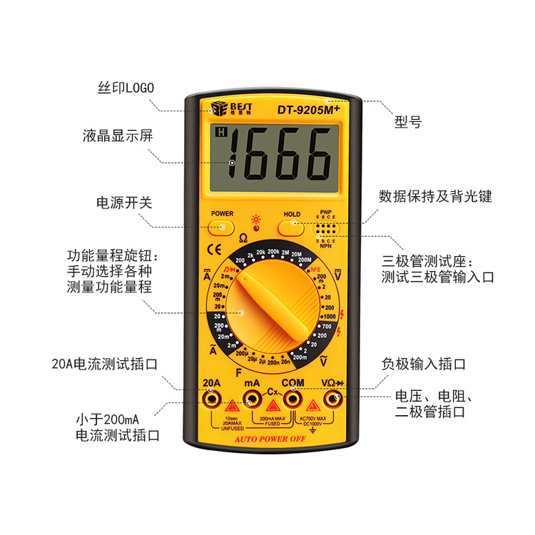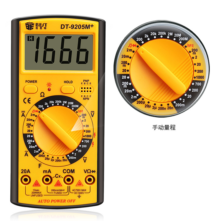 BST-9205M+ 多功能數(shù)字萬用表 手動量程 三位半背光顯示屏