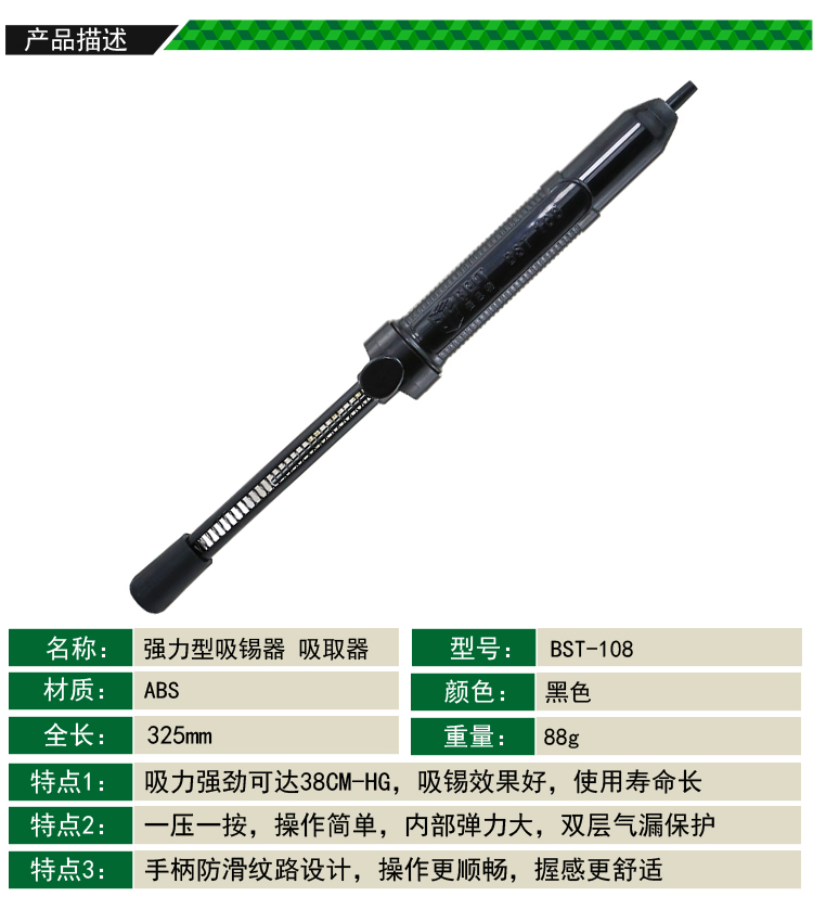 返回當(dāng)前位置: 首頁(yè) / 產(chǎn)品中心 / BST-108 吸取器 吸錫器(黑)