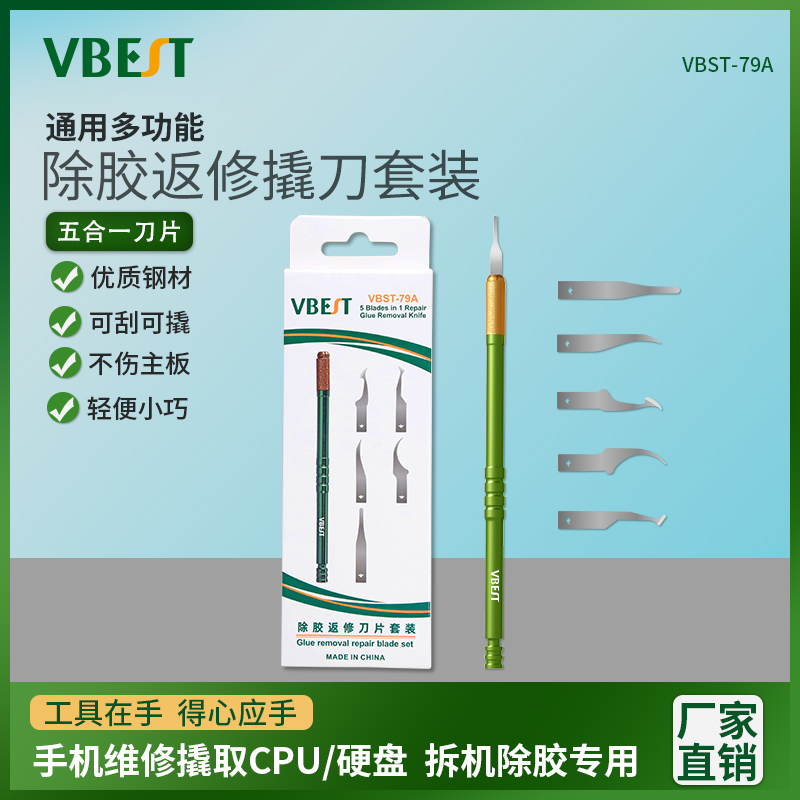 返回當(dāng)前位置: 首頁 / 產(chǎn)品中心 / VBST-79A 除膠返修撬刀套裝 維修5刀片合一芯片返修套裝 手機(jī)維修拆機(jī)刀 手機(jī)筆記本除膠工具 拆機(jī)維修工具組合 拆CPU撬刀