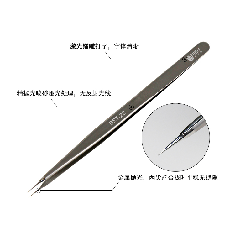 返回當(dāng)前位置: 首頁(yè) / 產(chǎn)品中心 / BST-22 指紋飛線鑷子 亞光鑷子 不銹鋼鑷子 圓尖頭拋光直鑷子