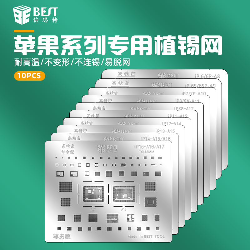 返回當(dāng)前位置: 首頁(yè) / 產(chǎn)品中心 / BST-IP(A8-A17)蘋果CPU系列專用植錫網(wǎng) 適用于iP6~15植錫鋼網(wǎng) 多用植錫方孔定位鋼網(wǎng) 植錫卡套裝10pcs