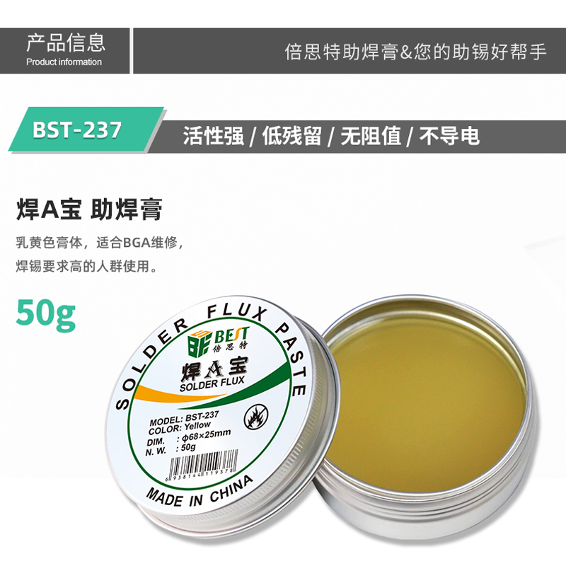 返回當(dāng)前位置: 首頁(yè) / 產(chǎn)品中心 / BST-237 焊A寶 助焊膏50g鋁盒裝 焊油助焊劑松香
