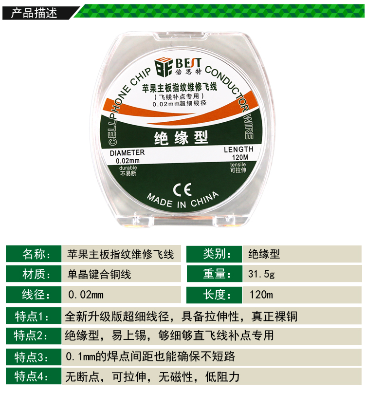 返回當(dāng)前位置: 首頁 / 產(chǎn)品中心 / 蘋果主板指紋維修飛線 0.02mm超細(xì)線徑 飛線補(bǔ)點(diǎn)專用 120m