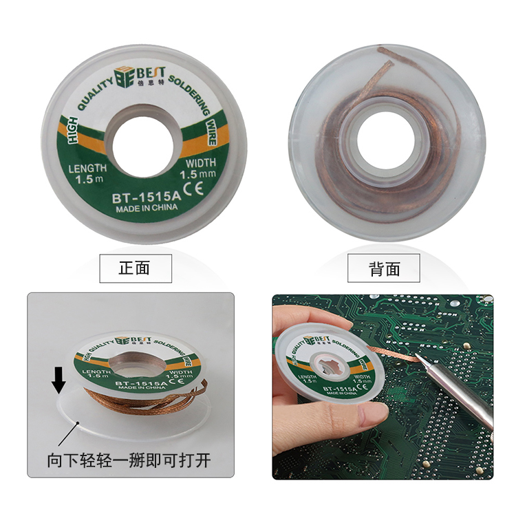 返回當(dāng)前位置: 首頁 / 產(chǎn)品中心 / BST-1515A 吸錫線 非鹵素低殘渣免清洗吸錫帶 清理焊盤必備