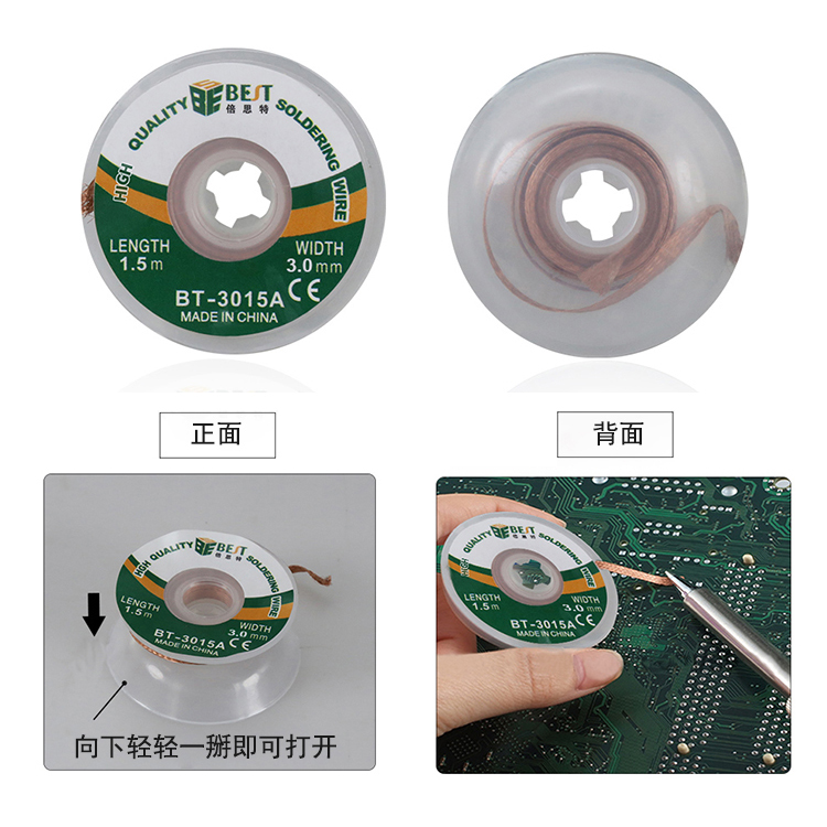 返回當前位置: 首頁 / 產(chǎn)品中心 / BST-3015A 吸錫線 非鹵素低殘渣免清洗吸錫帶 清理焊盤必備