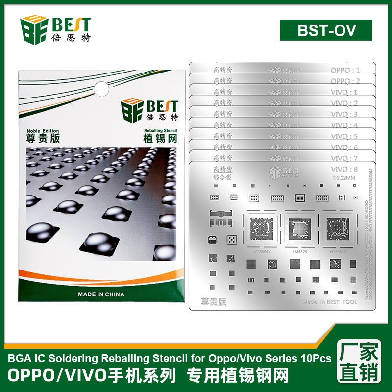 BST-OV OPPO/VIVO系列專用植錫網(wǎng) 多用植錫方孔定位鋼網(wǎng) 植錫卡套裝10pcs