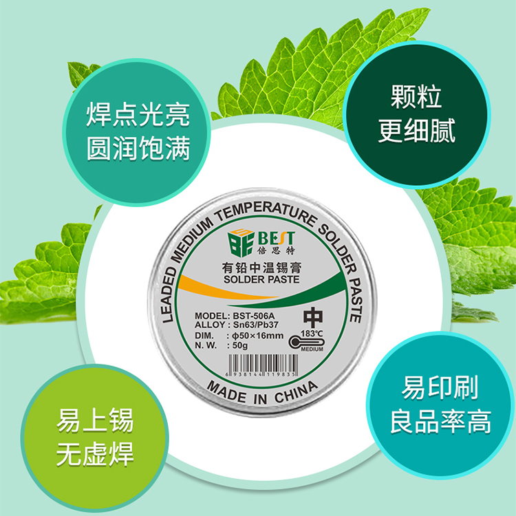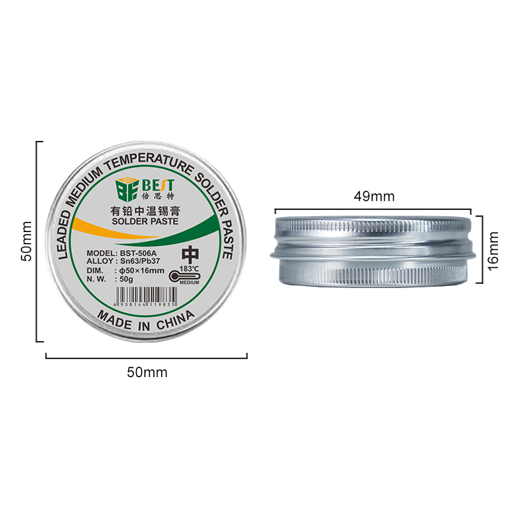 返回當(dāng)前位置: 首頁 / 產(chǎn)品中心 / BST-506A 有鉛中溫錫膏 Sn63/Pb37 鋁罐BGA植錫膏50g