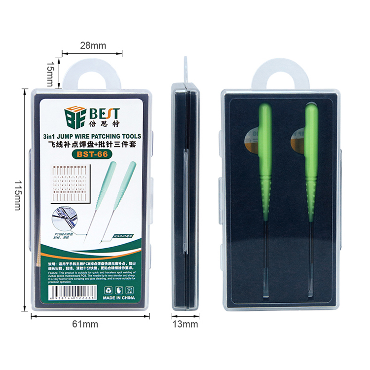 BST-66 PCB主板掉點(diǎn)專用工具 飛線補(bǔ)點(diǎn)焊盤+批針三件套 刮線挑針錐子定位針