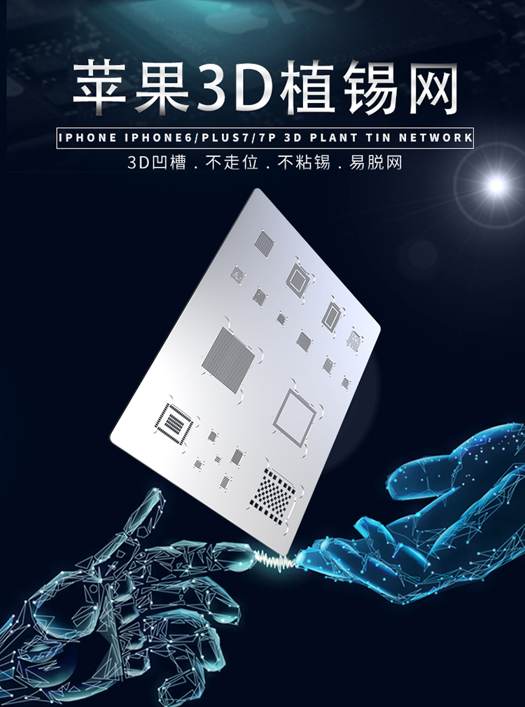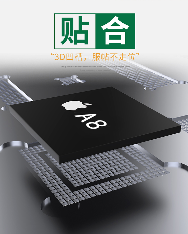 返回當(dāng)前位置: 首頁(yè) / 產(chǎn)品中心 / BST-A8 iP6/6P 3D植錫網(wǎng) 3D凹槽定位植錫鋼網(wǎng)