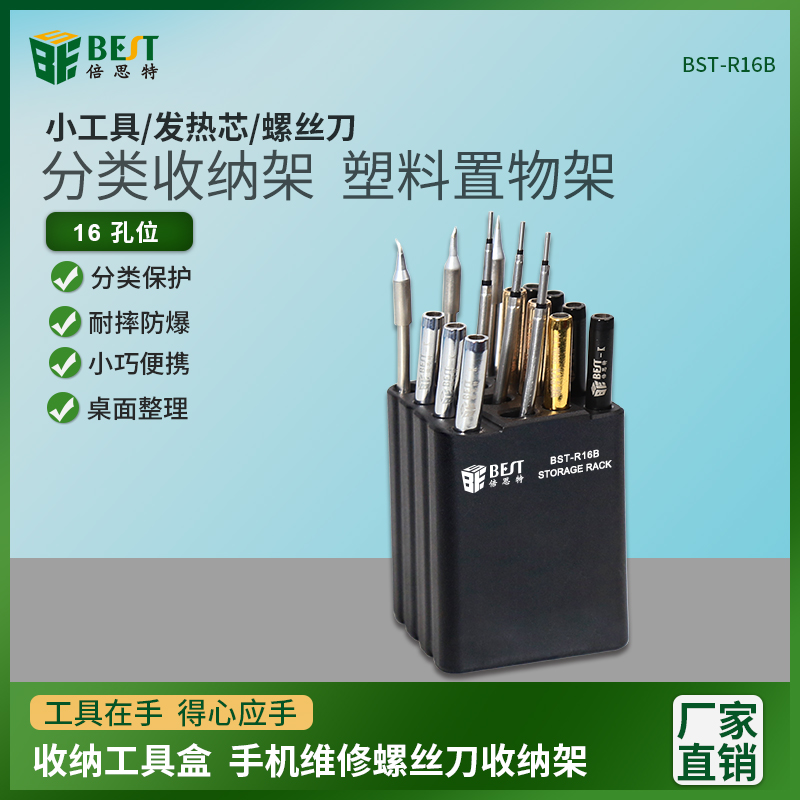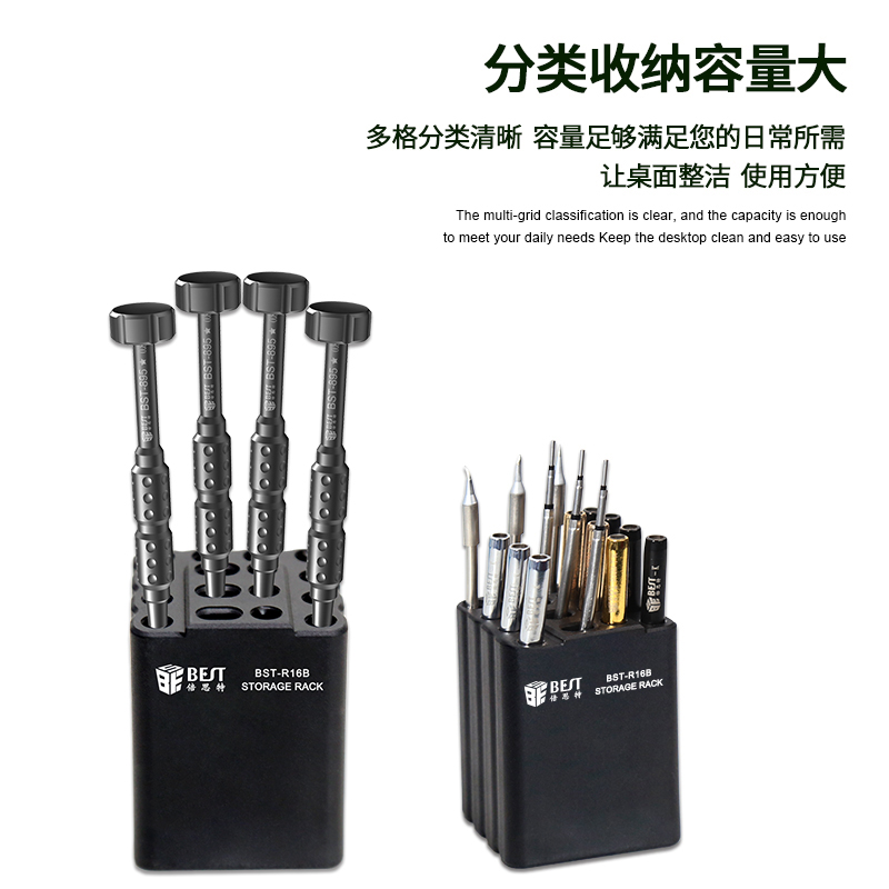 返回當(dāng)前位置: 首頁(yè) / 產(chǎn)品中心 / BST-R16B 小工具發(fā)熱芯螺絲刀分類收納架 16個(gè)孔位分類擺放 拿取方便 耐高溫阻燃防摔防爆 烙鐵頭收納盒 塑料置物架
