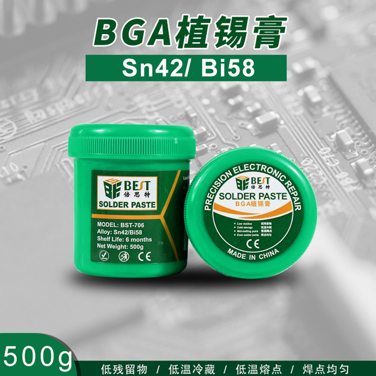 返回當(dāng)前位置: 首頁 / 產(chǎn)品中心 / BST-706 無鉛錫漿 低溫?zé)o鉛錫膏 焊錫膏 BGA植錫膏 Sn42/Bi58 500g
