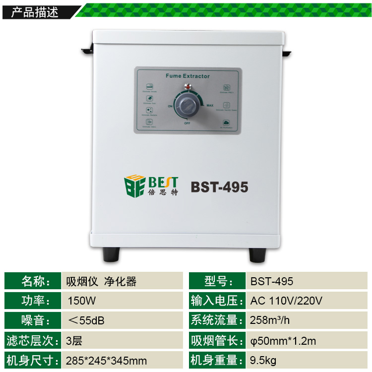 ? 產品名稱: 吸煙儀 凈化器? 產品型號: BST-495? 產品類別: 吸煙儀系列