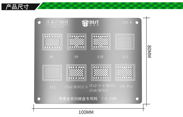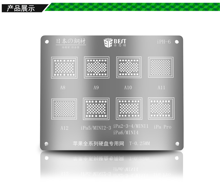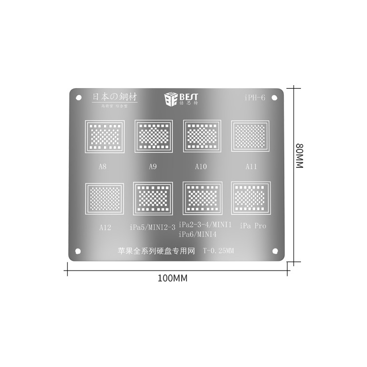 返回當(dāng)前位置: 首頁(yè) / 產(chǎn)品中心 / iPH-6 iP全系列CPU硬盤專用植錫網(wǎng) 多用植錫方孔定位鋼網(wǎng) 植錫卡