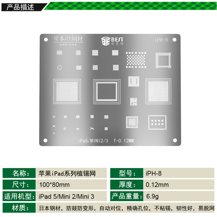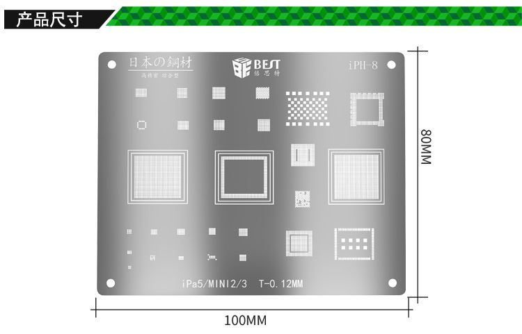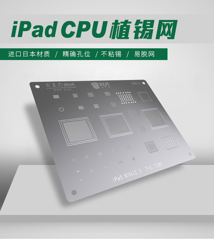 返回當(dāng)前位置: 首頁 / 產(chǎn)品中心 / iPH-8 iPad 5/Mini2/3專用植錫網(wǎng) 多用植錫方孔定位鋼網(wǎng) 植錫卡