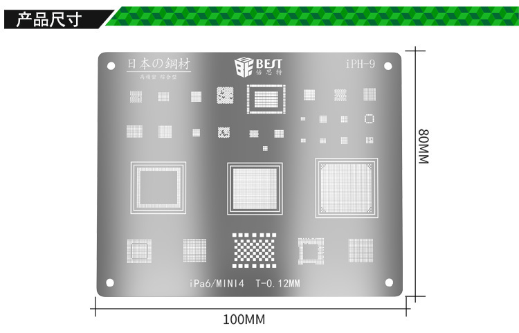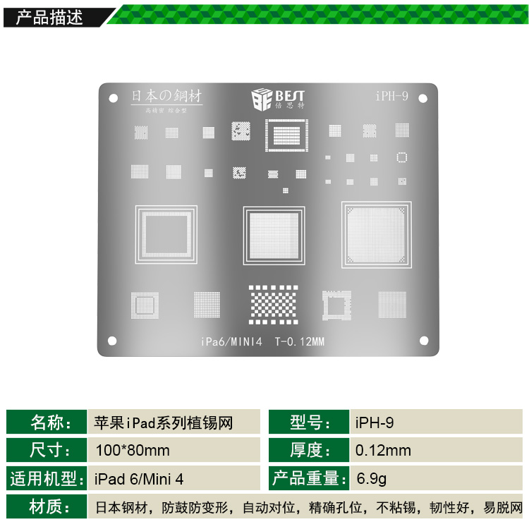 ? 產品名稱: iPad 6/Mini4專用植錫網? 產品型號: iPH-9? 產品類別: 植錫網系列