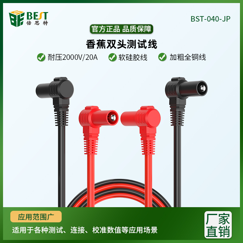 返回當(dāng)前位置: 首頁(yè) / 產(chǎn)品中心 / BST-040-JP 香蕉雙頭測(cè)試線(xiàn) 雙插測(cè)試線(xiàn)4mm安全型測(cè)試導(dǎo)線(xiàn) 紅黑雙頭90度插線(xiàn) 香蕉插疊插連接線(xiàn) 雙向蓮花頭導(dǎo)線(xiàn) 2000V20A大電流